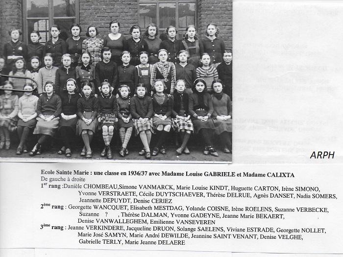 Photo n°10237:premier rang, 5eme à gauche, Jeanne Depuydt née en 1923.
